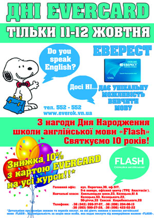 Спеціально до Дня EVERCARD та з нагоди 10-го Дня Народження школи англійської мови «Flash»!
