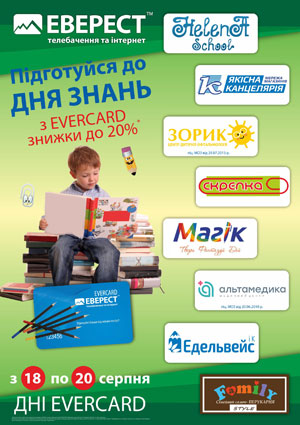 Детальніше про розмір знижок, співвідношення розміру знижок до звичайної ціни, перелік продукції, щодо якої надається знижка, на сайті everok.vn.ua та у партнерів "Клубу "Еверест". Відповідальність за надання знижки несуть партнери "Клубу Еверест".